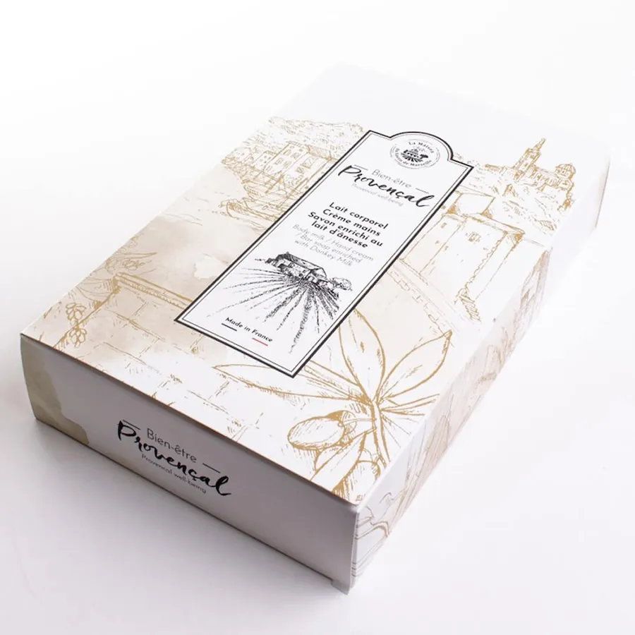 Parfumul gamei pe bază de lapte de măgăriță persistă pe piele mult timp după aplicare și este obținut din uleiuri esențiale naturale, în Grasse.