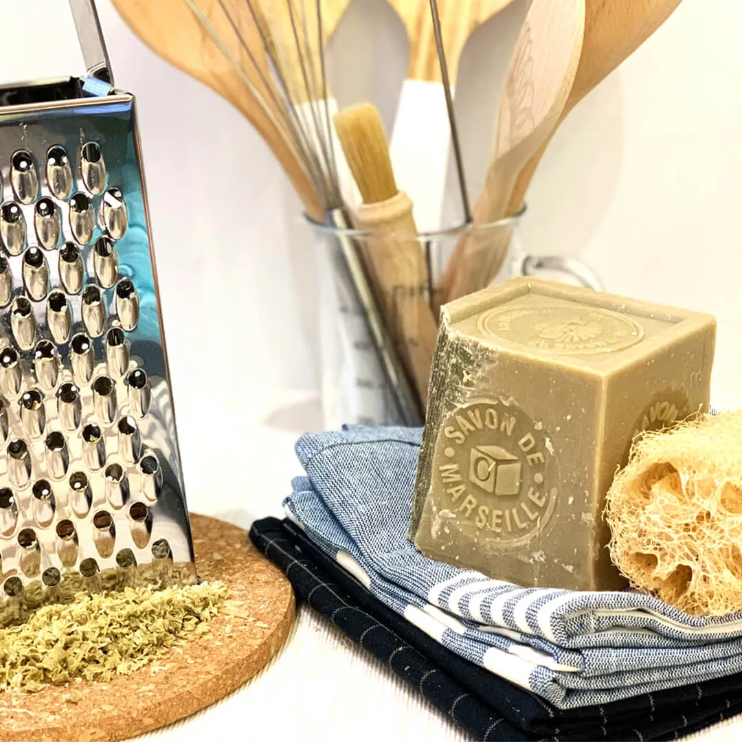 Pe cât este de eficient ca degresant pentru vase, pe atât este de blând cu mâinile tale. Săpunul de Marsilia folosit ca detergent pentru vase este o alegere naturală, nepoluantă, sigură și foarte economică.