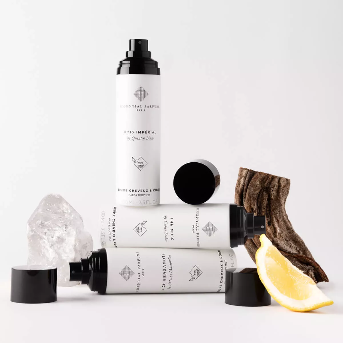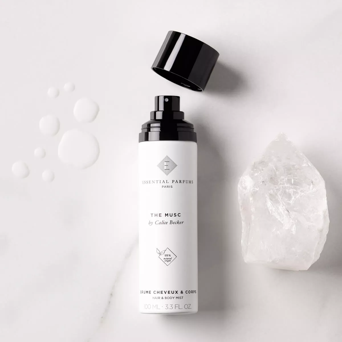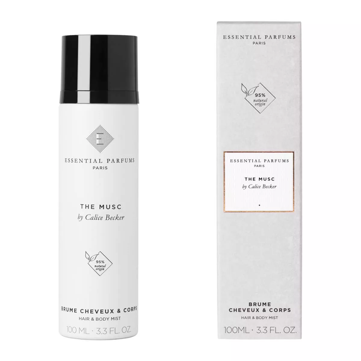 Fidel esteticii minimaliste și contemporane Essential Parfums, apa parfumată vine într-un flacon simplu și elegant din aluminiu. Formatul de 100 ml este conceput pentru o utilizare dublă, pe corp și păr, rămânând în același timp compact și ușor de așezat într-o trusă de toaletă.